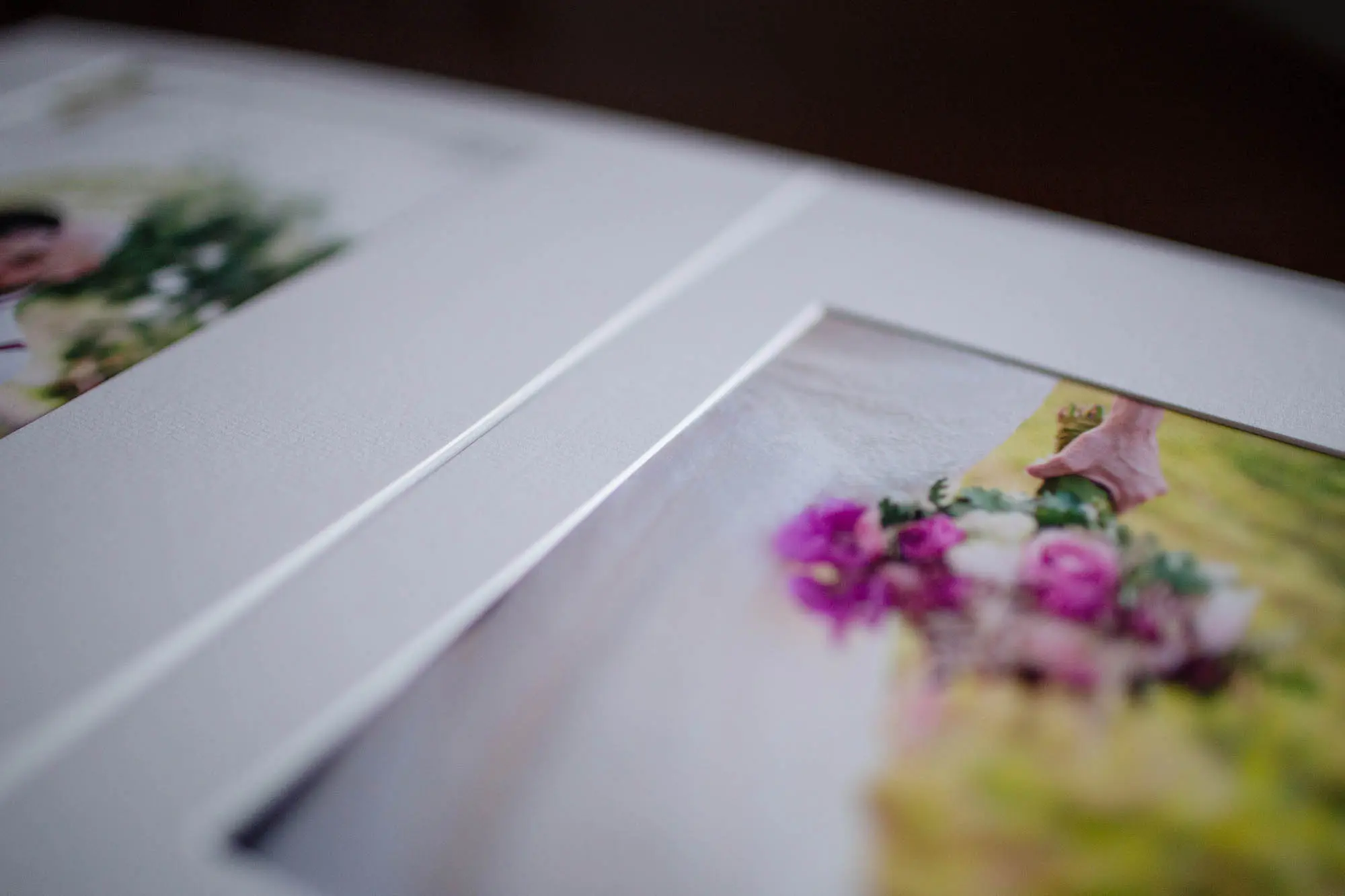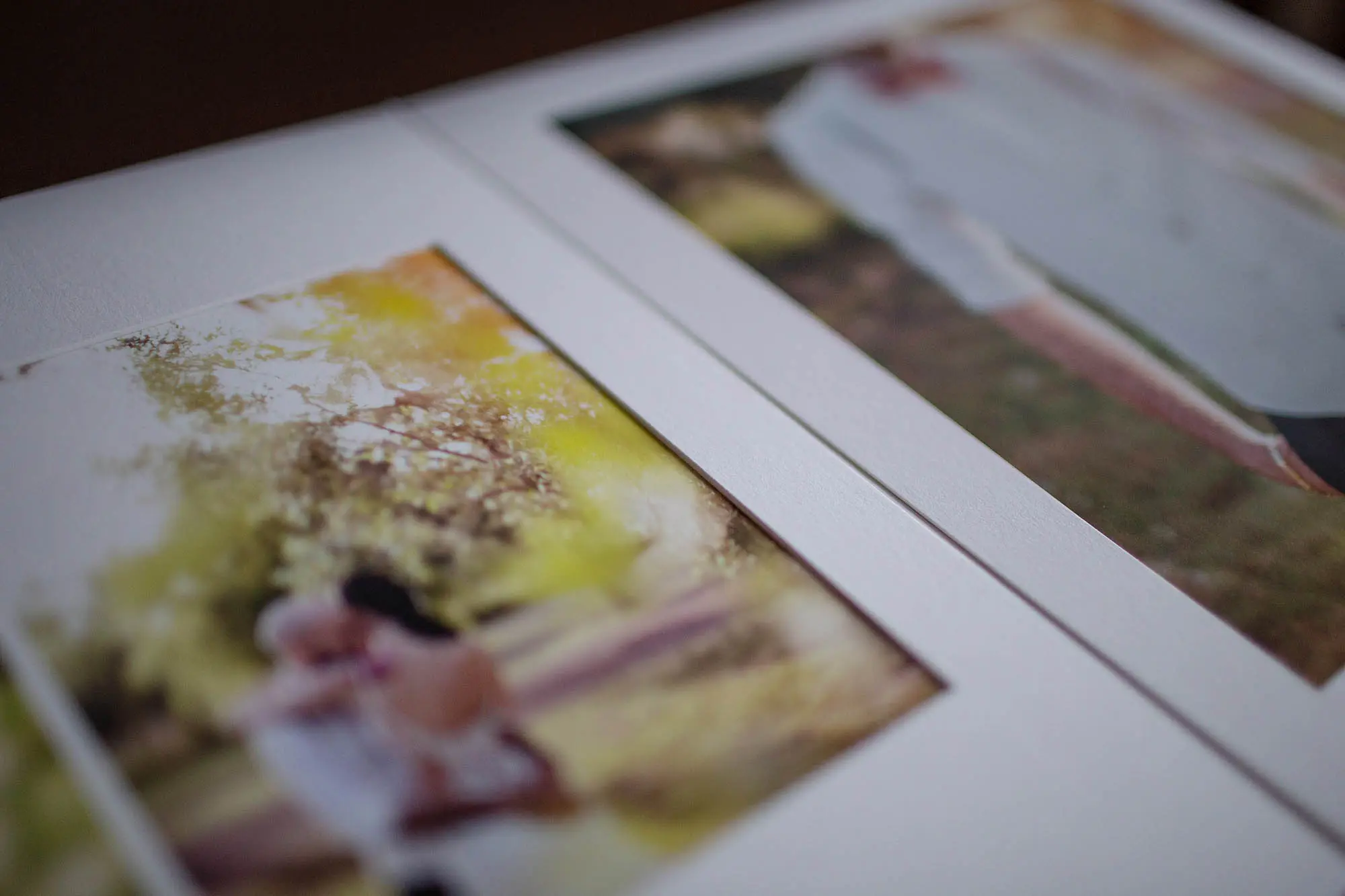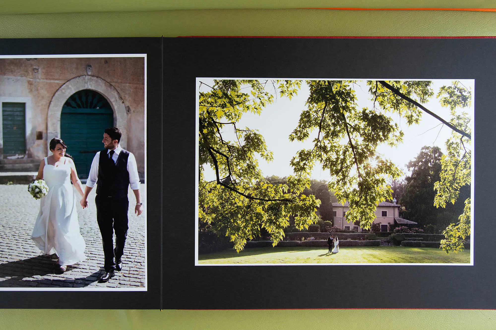 L’album è costruito interamente a mano, i passepartout sono realizzati in cartoncino pregiato, con taglio a 45°.