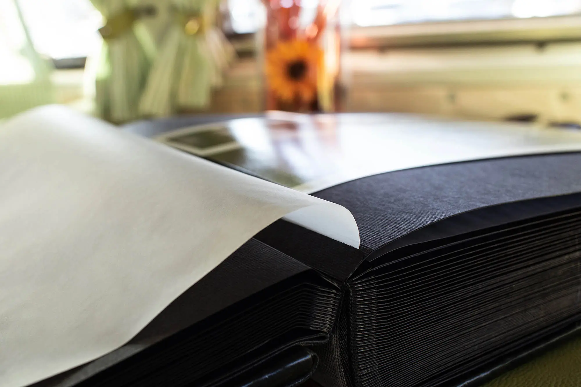 album con o senza velina, multiformato, passepartout, vari tipi di copertine (tessuti, ecopelle, cuoio)