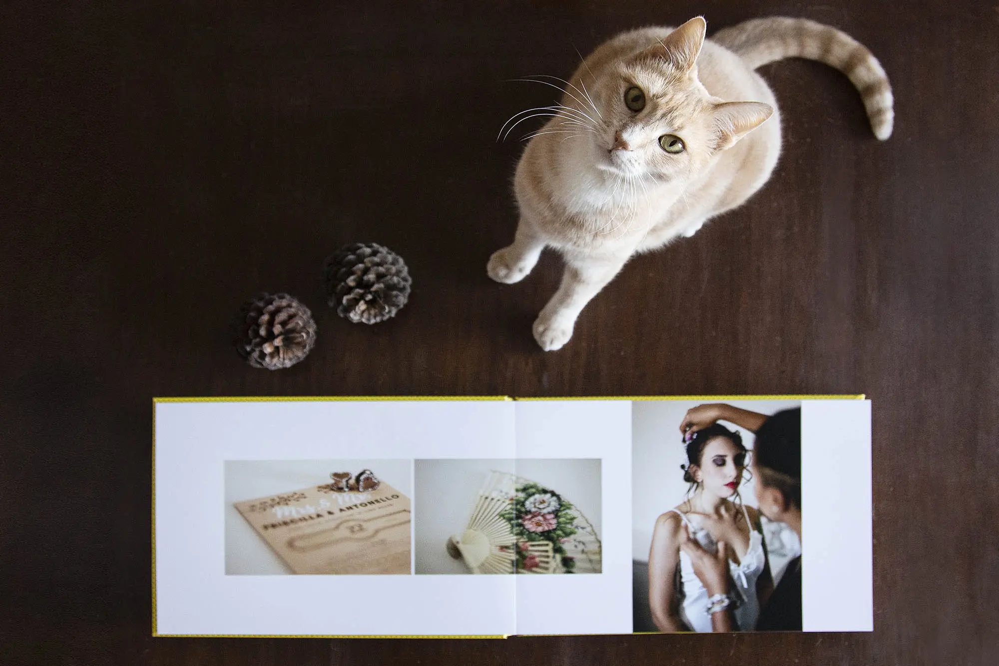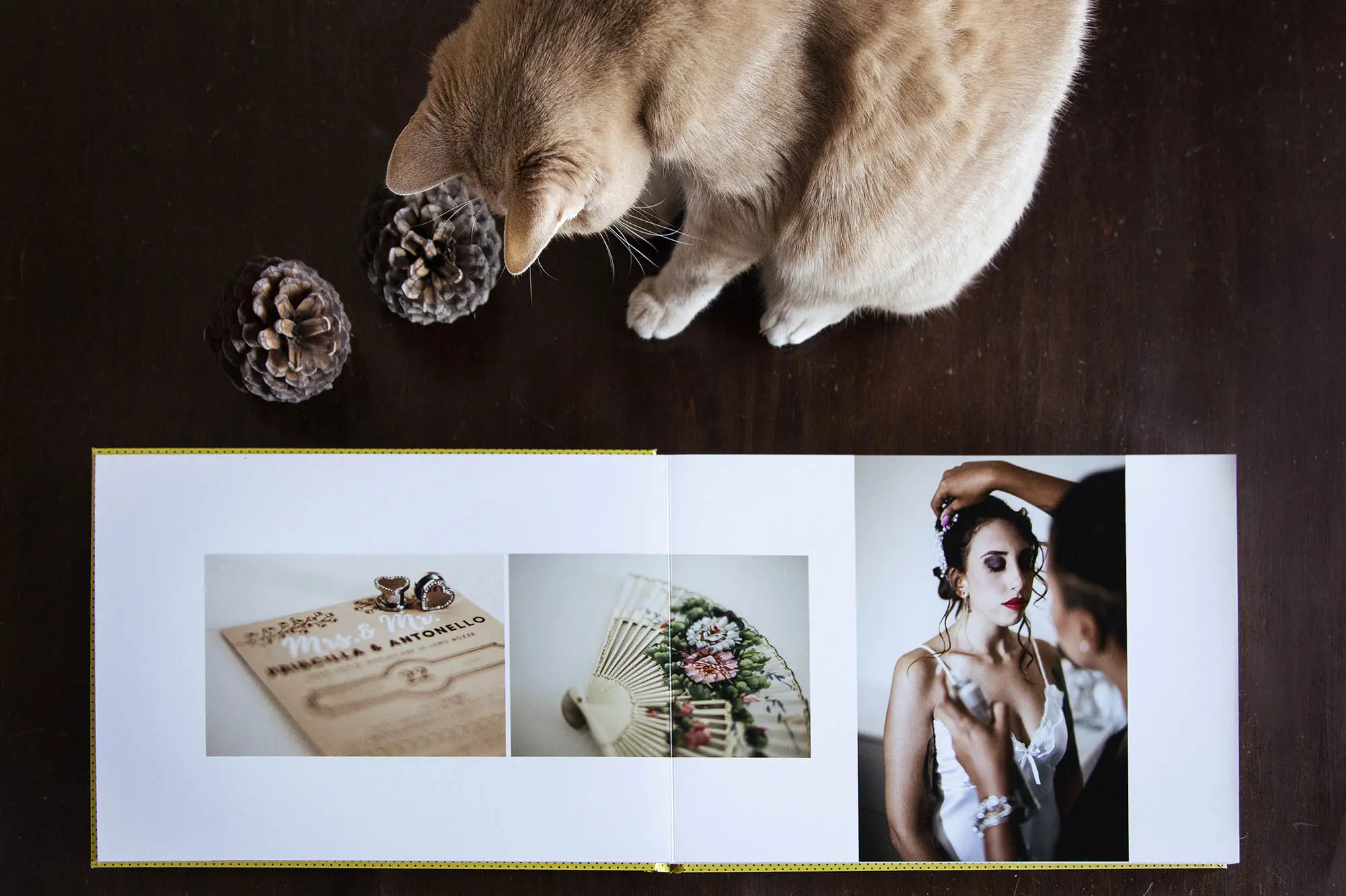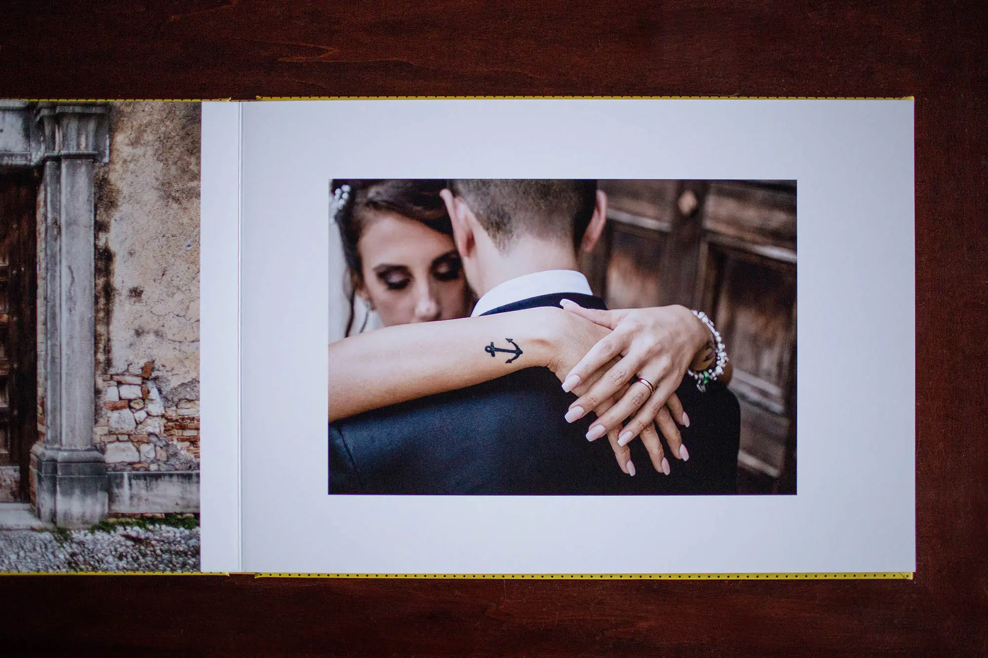 Non contenti, abbiamo cercato di unire ancora di più il classico con il moderno, creando un album con una grafica che richiama lo stile inconfondibile e semplice del tradizionale, aggiungendo un’impaginazione con costruzione e solidità moderna per quanto riguarda i materiali, oggi più resistenti e la compattezza di una pagina di un fotolibro, ma mantenendo un aspetto decisamente retrò.