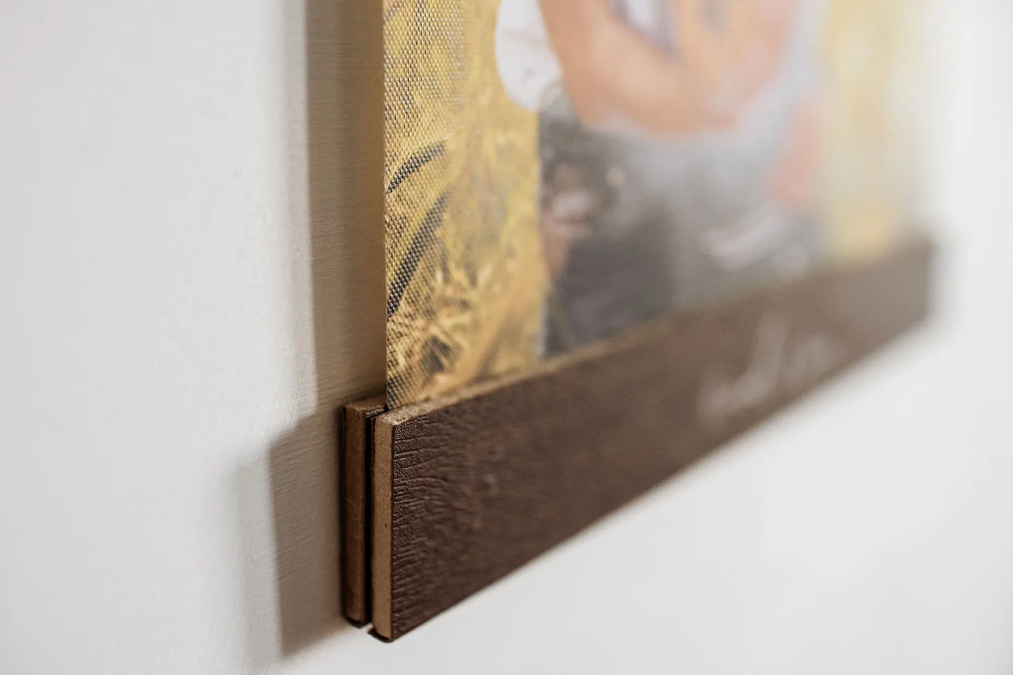 Three Frames è una tela 60x30cm realizzata con tre fotografie a vostra scelta e rilegata da due bacchette magnetiche color marrone scuro effetto legno.