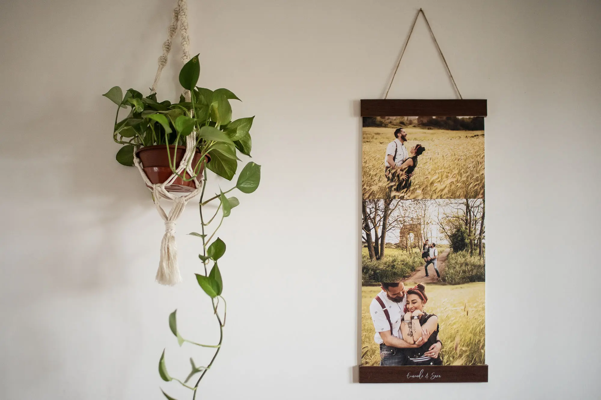 Scegliete 3 foto che più vi piacciono e noi realizzeremo questa fantastica tela formato 60×30 cm, rilegata sia in alto che in basso da due bacchette magnetiche color marrone scuro, con un laccio in Juta per appenderla. Avete anche la possibilità di personalizzare la cornice con una scritta, oppure con i vostri nomi.